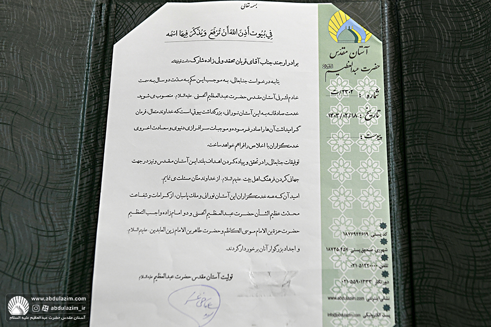 تقدیر خادمین آستان مقدس از پرستاران دارالشفاء کوثر بمناسبت میلاد حضرت زینب(س)...