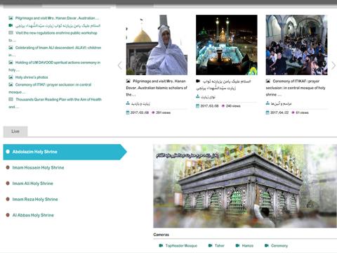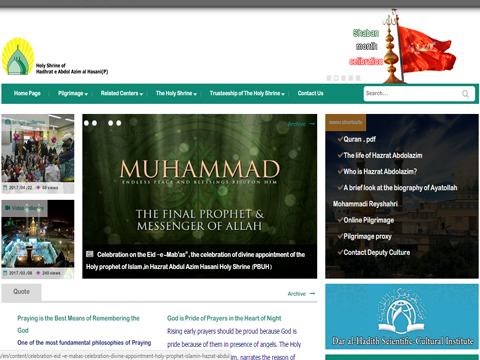 By launching this website, variety of information and pages like: introduction of Holy Shrine activities and its related departments, introduction of character of Hazrat Abdul Azim and two nearby holy Imam Zade (Descendants of Imams) (Tahir Ibn Zein Al Abedin and Hamze Ibn Musa Kazim (PBH), picture gallery, news of various cultural affairs held in Holy Shrine, registration of online pilgrimage requested on behalf of everybody, contact, memories, live broadcast of Holy Zarih, live broadcast of especial events of Holy Shrine and other necessary information would be accessible for English language users internationally.