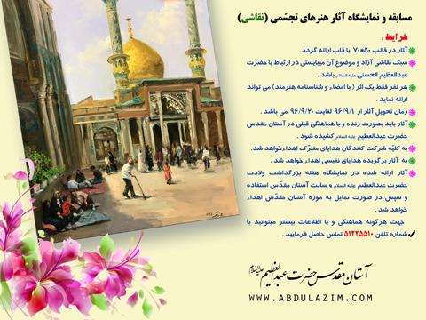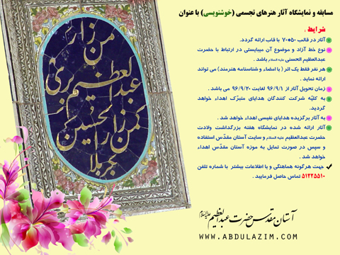 مسابقه هنرهای تجسمی "نقاشی" و "خوشنویسی" با عنوان "نقش ارادت" به  مناسبت هفته گرامیداشت ولادت حضرت عبدالعظیم حسنی علیه السلام