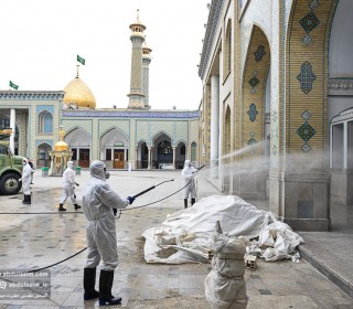 ضدعفونی کردن صحن های حرم حضرت عبدالعظیم(ع) توسط سپاه پاسداران تهران بزرگ / عکس: اسدی