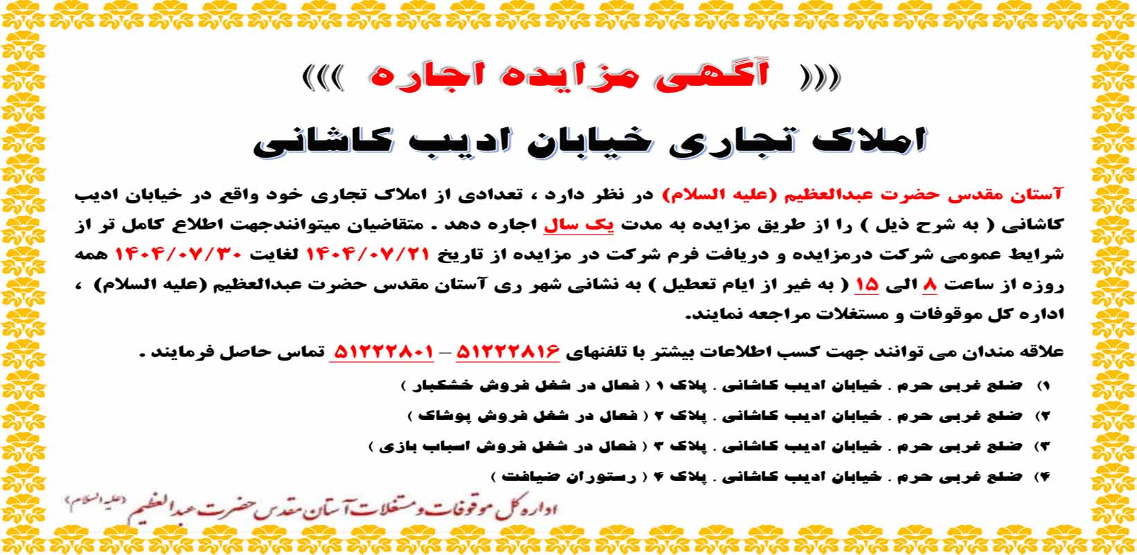 مزایده واحد های تجاری خیابان ادیب کاشانی